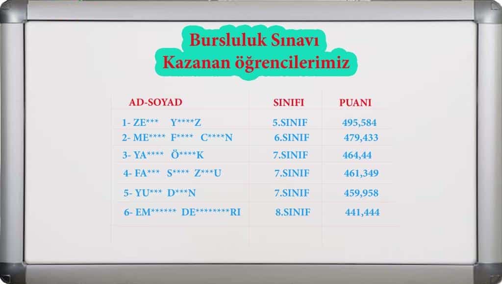 Okulumuz öğrencileri başarılarıyla gururlandırmaya devam ediyor. Bu yıl düzenlenen Bursluluk Sınavında, 6 öğrencimiz üstün başarı göstererek burs almaya hak kazandı.